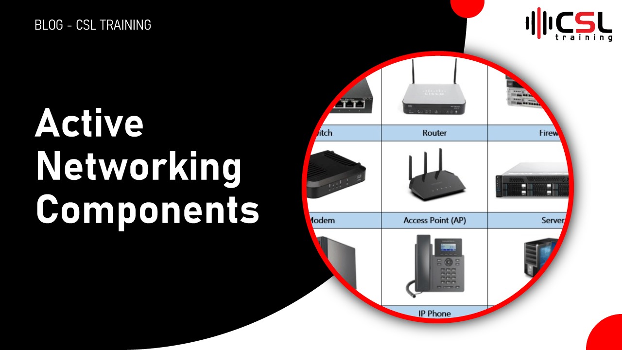 যেসব নেটওয়ার্কিং ডিভাইস ডেটা প্রসেসিং, রাউটিং, প্যাকেট ফরোয়ার্ডিং, ফিল্টারিং বা ম্যানেজমেন্ট করতে সক্ষম এবং বিদ্যুৎ (Power Source) ব্যবহার করে, সেগুলো একটিভ (Active) কম্পোনেন্টের অন্তর্ভুক্ত। যেমনঃ Router, Switch, Modem, Server, Access Point, Firewall ইত্যাদি।