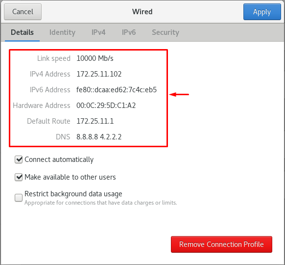 ইতিমধ্যে গ্রাফিক্যাল পদ্ধতিতে কিভাবে স্ট্যাটিক (Static) আইপি (IPv4) কনফিগার করা হয়, এ ব্যাপারে বিস্তারিত দেখেছি। এখন RHEL/CentOS এর কমান্ড টার্মিনালে কমান্ড দিয়ে চেক করা হবে।
