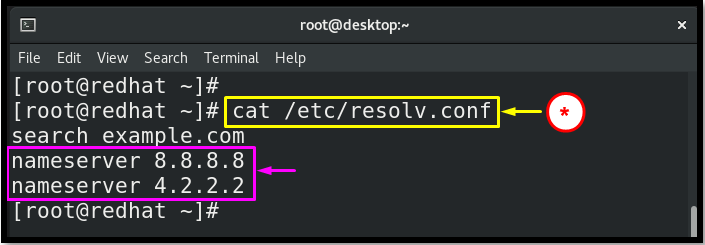 - নিচের ‘cat /etc/resolv.conf’ কমান্ড দিয়ে DNS সার্ভার অ্যাড্রেস চেক করা হয়েছেঃ