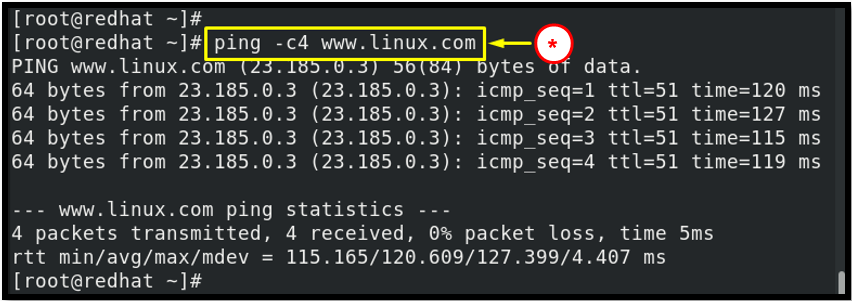 - নিচের কমান্ডের মাধ্যমে ‘linux.com’ ওয়েব সাইটে ‘ping’ করে চেক করা হয়েছেঃ