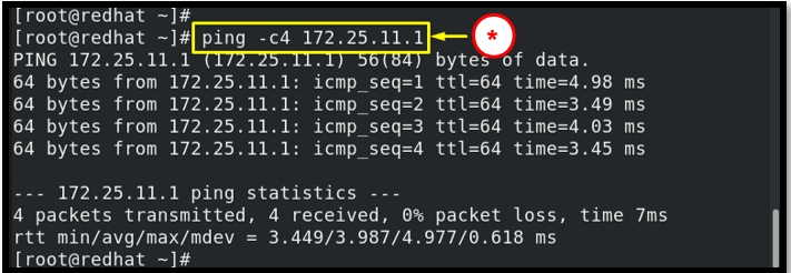 - নিচের ‘ping’ কমান্ডের মাধ্যমে গেটওয়ে আইপি (172.25.11.1) কে চেক করা হয়েছেঃ